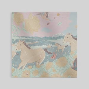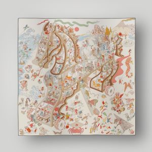 Carriages and horses remained close companions for many years, then, freed from their heavy harness, horses began to slip away. Meanwhile, in this delicate composition, cars reveal their old-fashioned charm and the remarkable craftsmanship that made France one of the world’s most prestigious manufacturing hubs. In colorful crests or in the center of the scarf, open carriages, elegant coupes, sedans and high-perched phaetons all testify to the sophistication of an entire era.