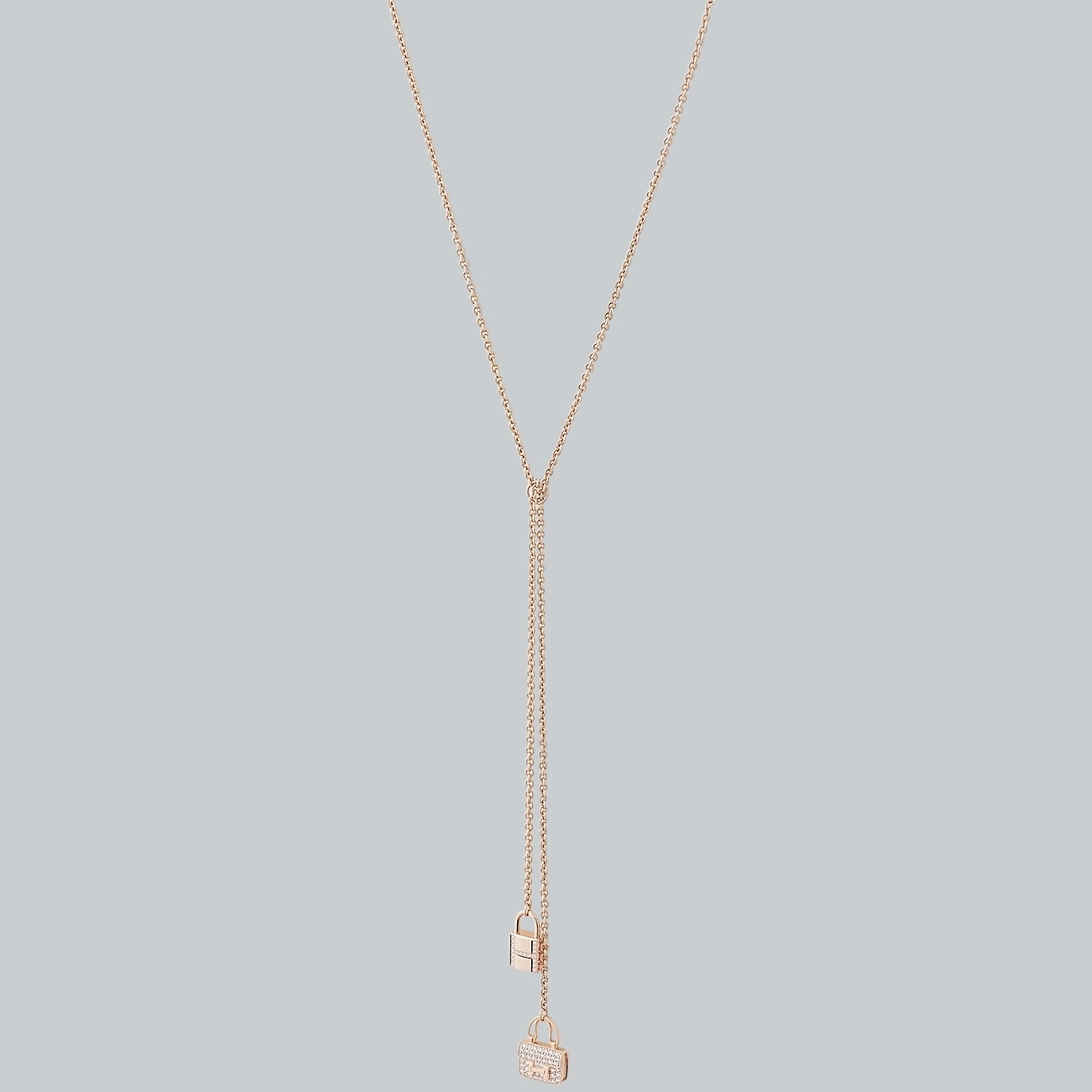 Long necklace in rose gold set with diamonds and Kelly snap closure
