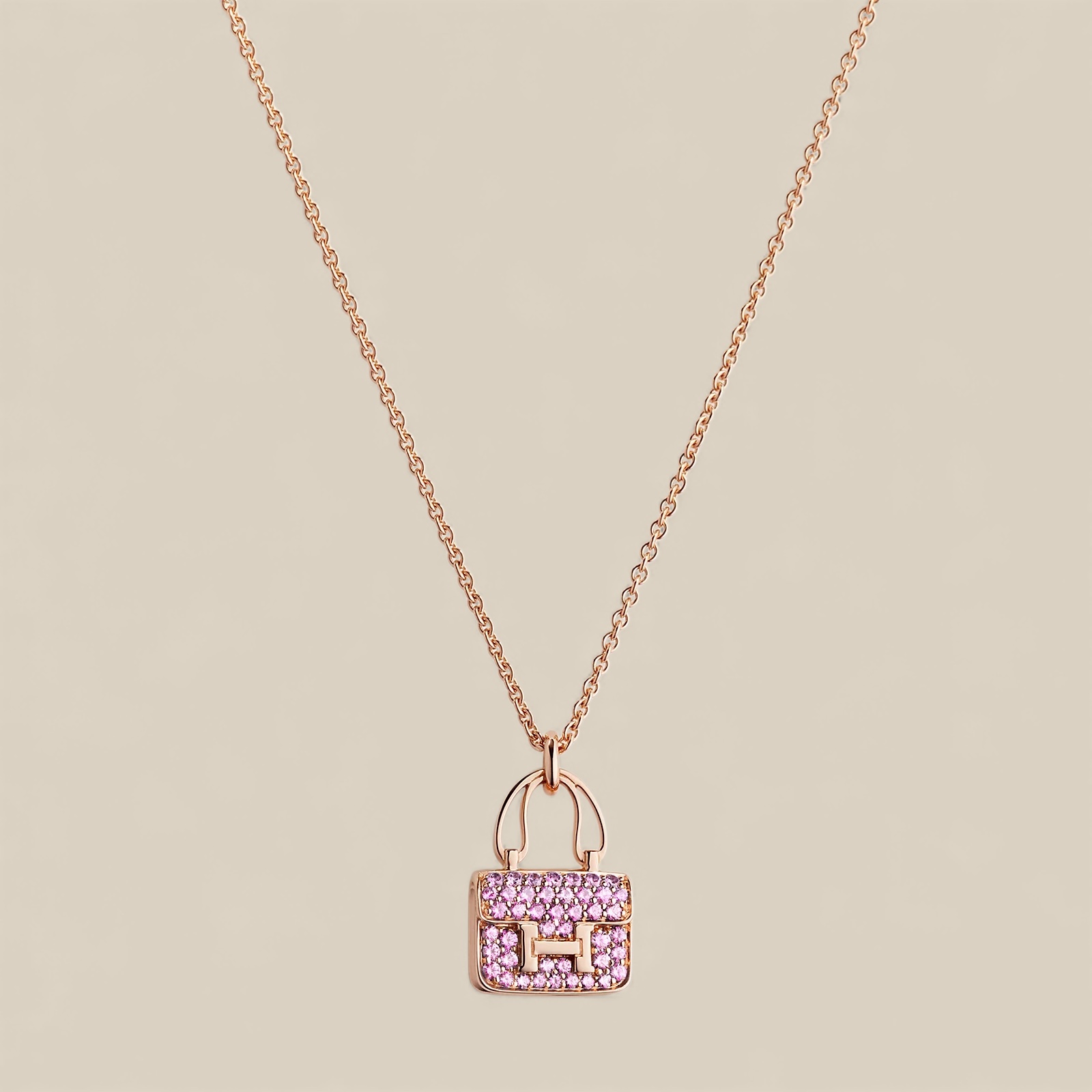 Pendant in rose gold and pink sapphire gemstones with Kelly snap closure