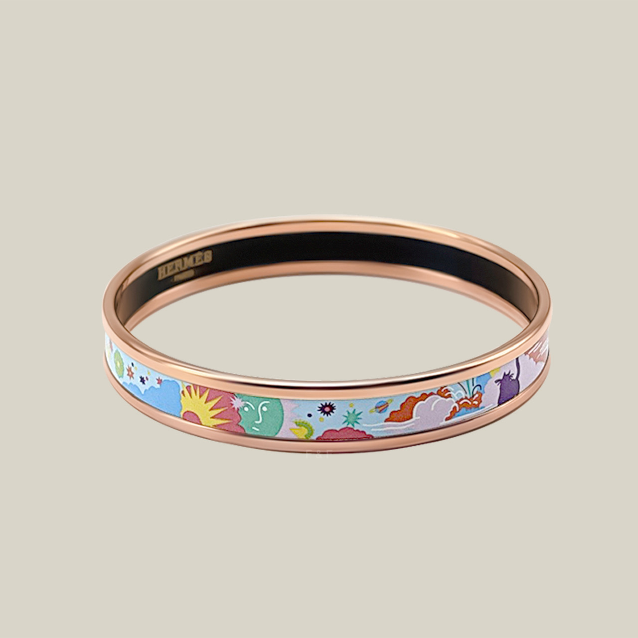 Narrow bangle in “Au Royaume d’Helios” printed enamel, design by Matthieu Cossé.