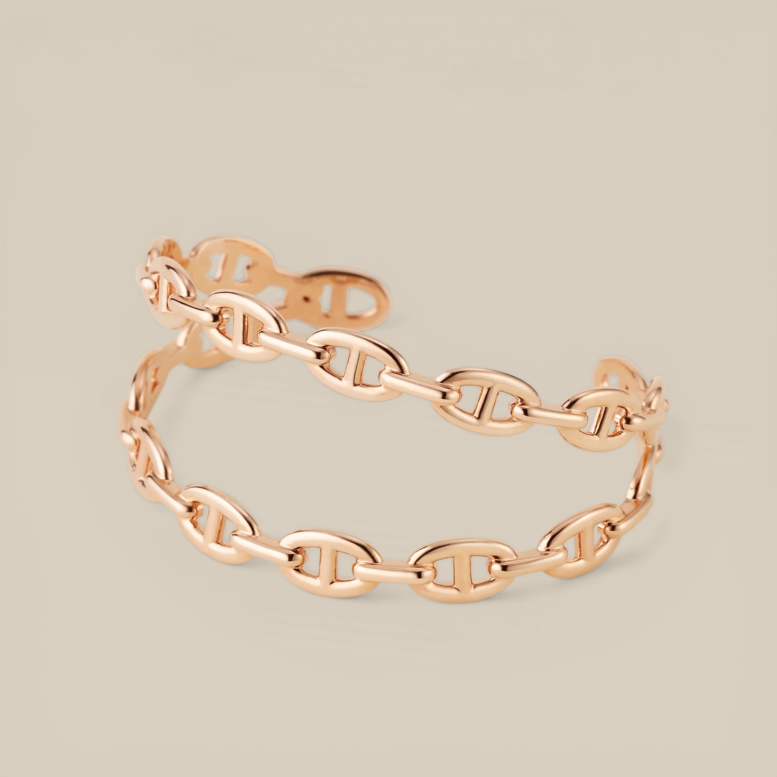 Des bijoux comme des sculptures. La Chaîne d’ancre s’affranchit de ses origines souples et fluides et se réinvente dans une version rigide ou articulée.