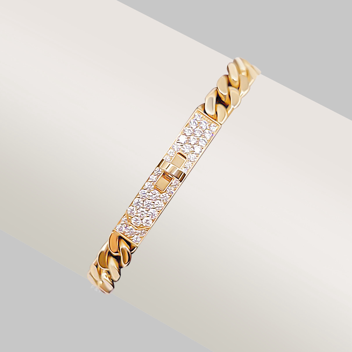 Bracelet in yellow gold set with diamonds and Kelly clasp