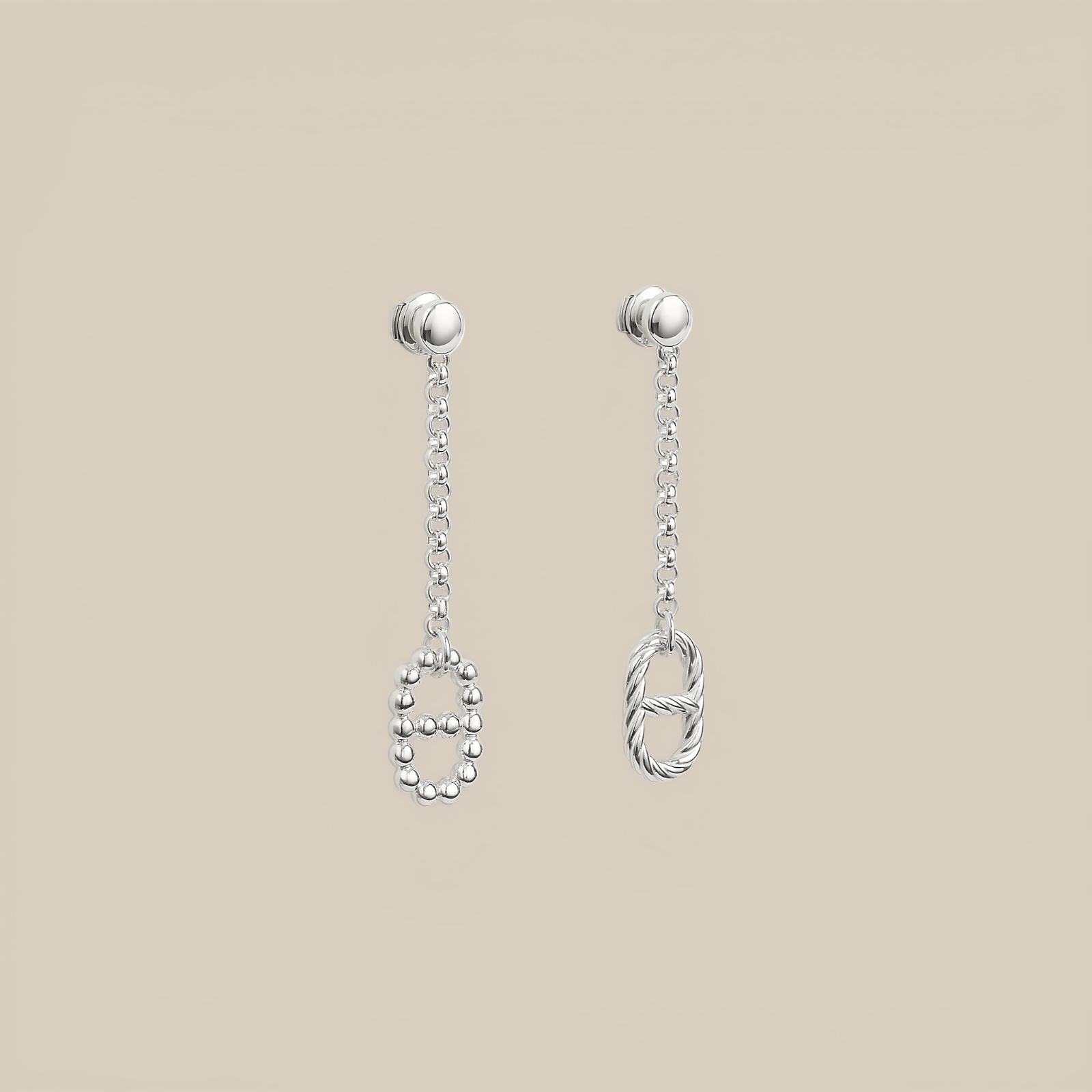 Dangle earrings in sterling silver, one beaded earring and one twisted earring with Guardian clasp
