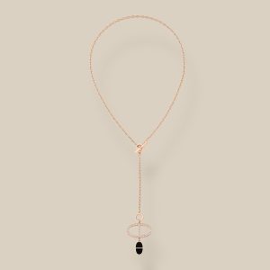 Pendant in rose gold and black and white ceramic set with diamonds and toggle closure