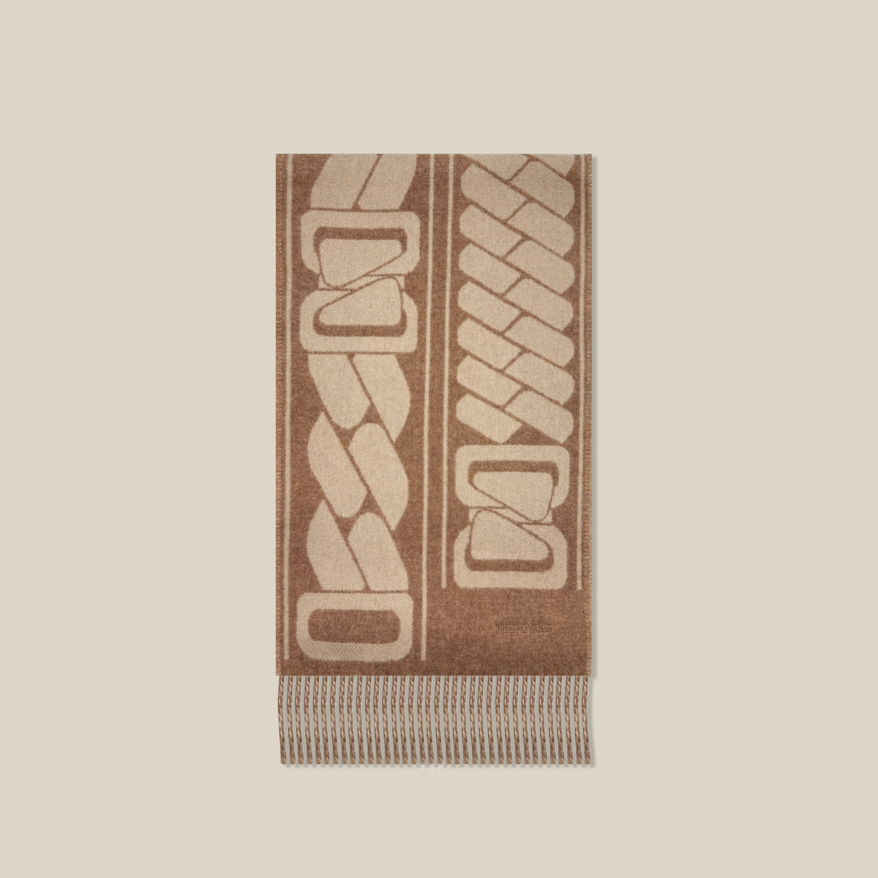 Florence Manklik’s Clic, C’est Noue design is weaved into this graphic bicolor scarf.