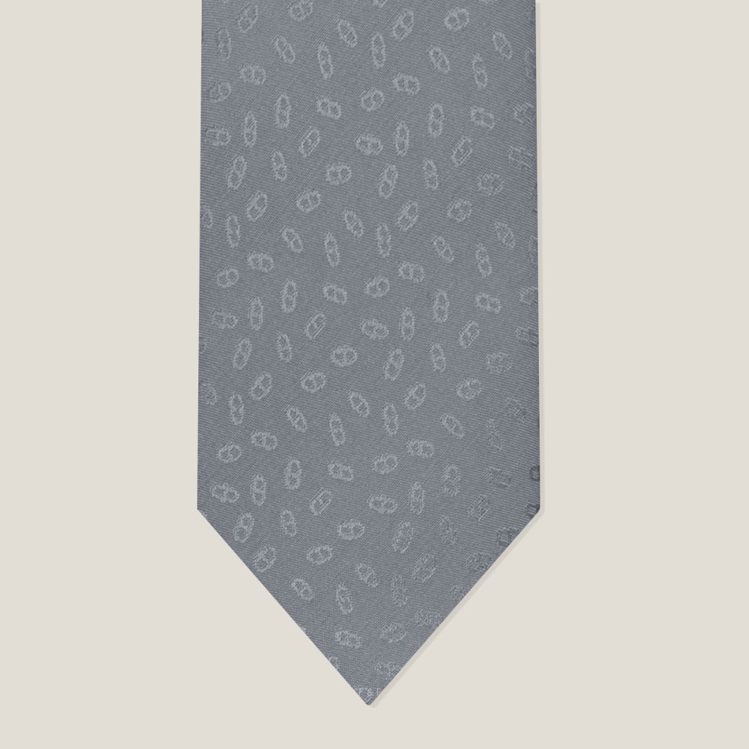 A new link design is revealed in the weave of this tie.