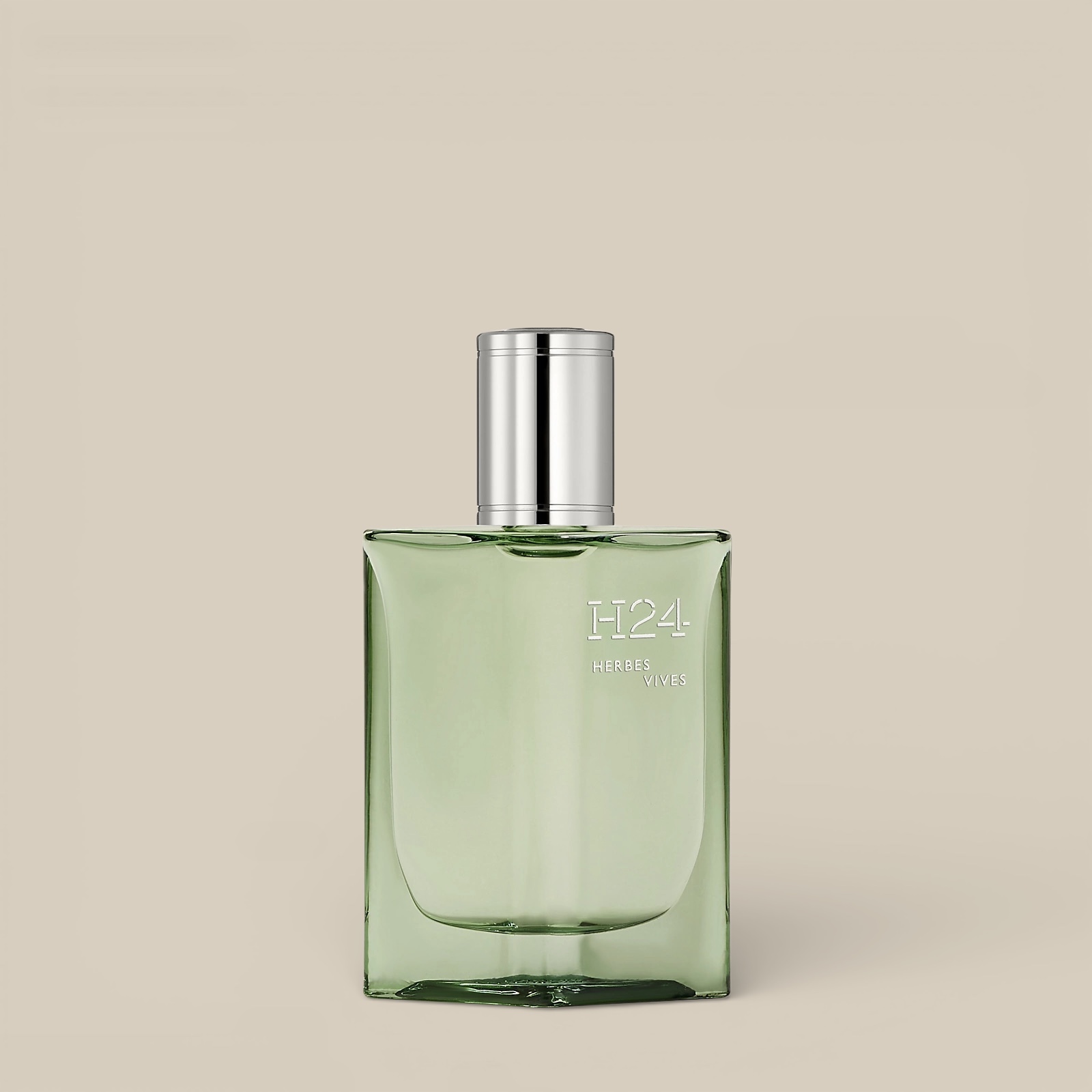 With this third installment in the H24 line, Hermès perfumer Christine Nagel continues her botanical exercise in the footsteps of a modern man on the move. H24 Herbes Vives eau de parfum recreates the sensation of rediscovering urban nature after the rain.