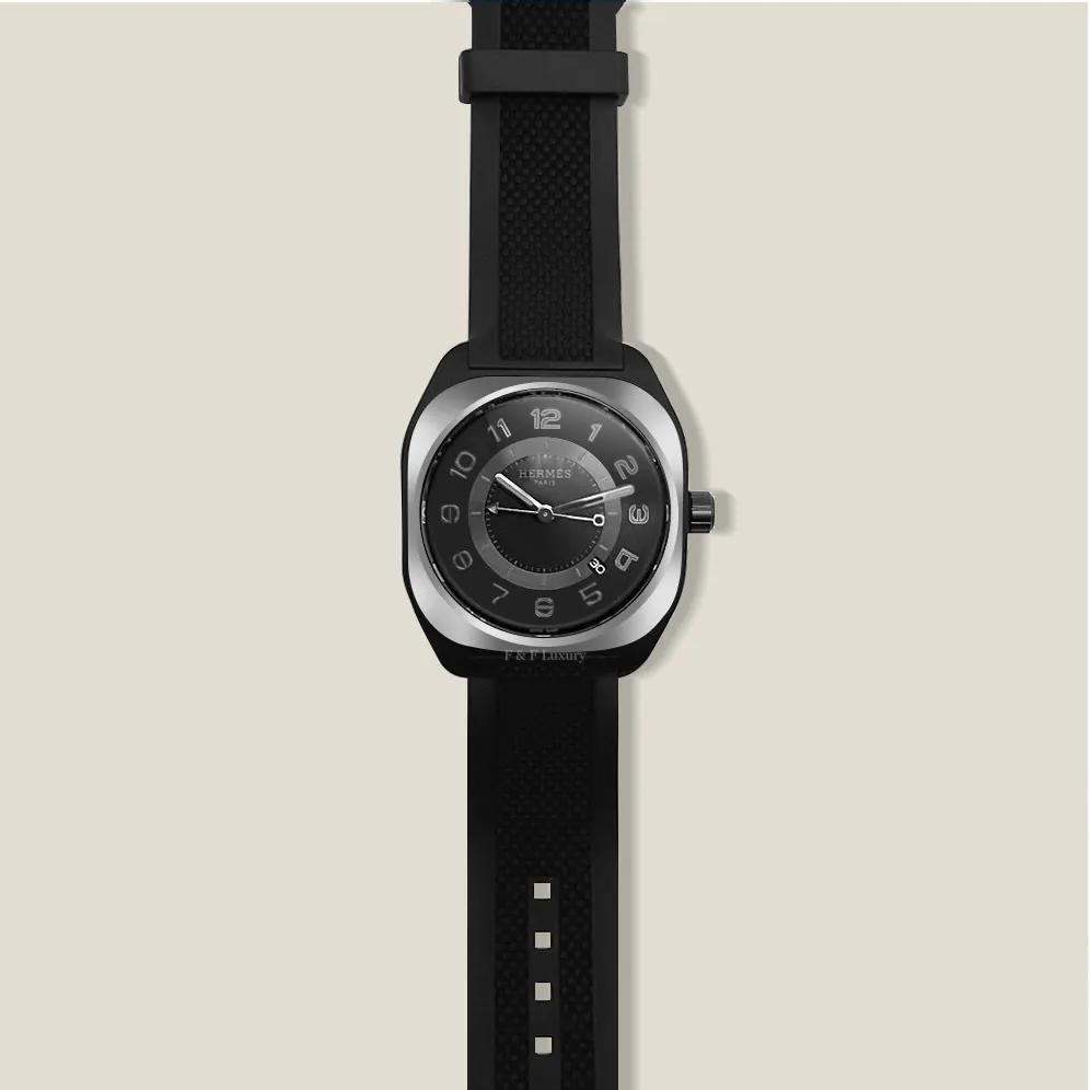 Graphene composite watch with Manufacture movement H1837 and black rubber strap