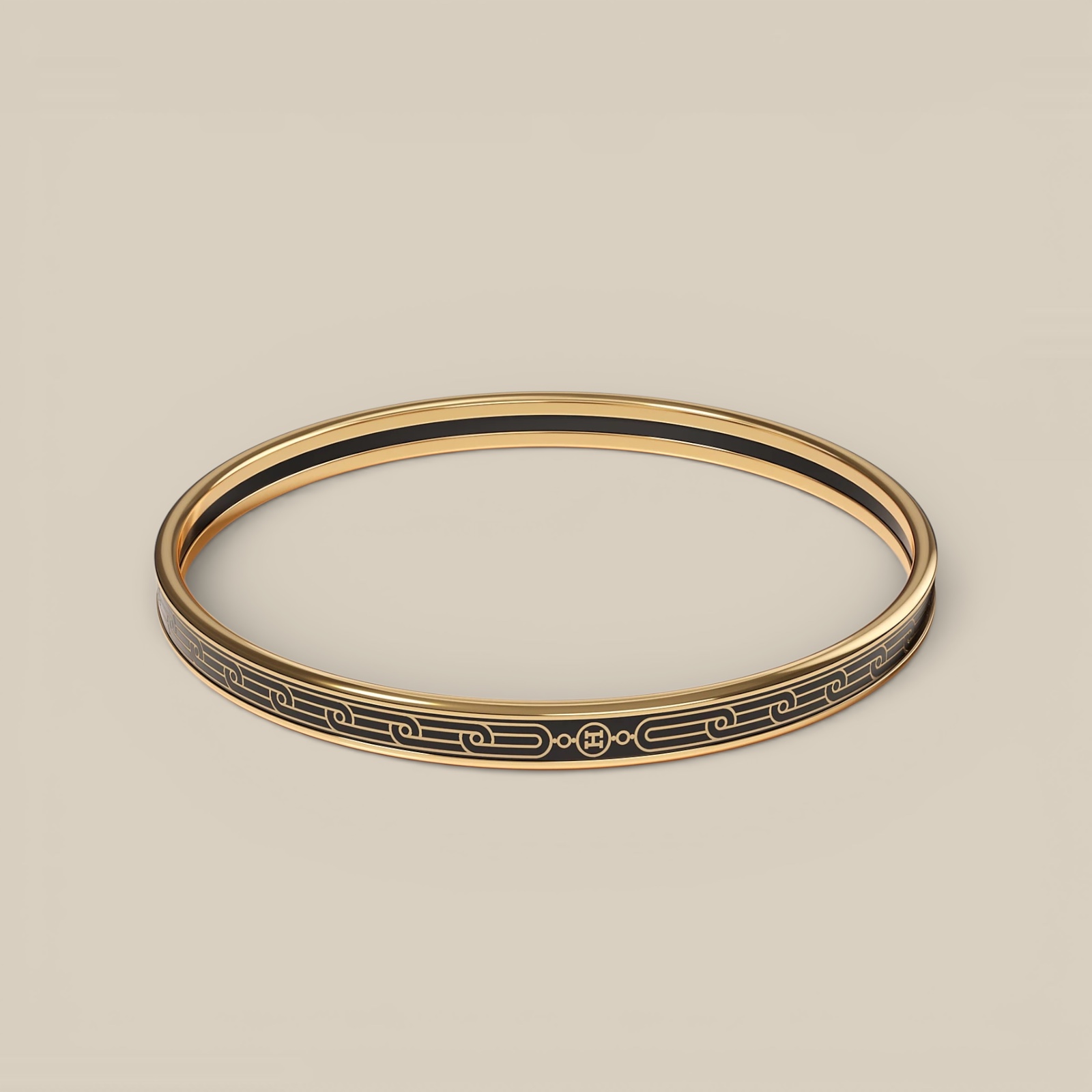 Extra-narrow bangle in “Hermès Sellier” printed enamel, design by Benoît-Pierre Emery. Thin bracelets are perfect for stacking!