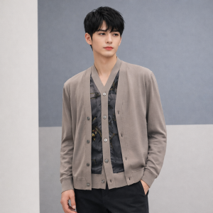 – Pure mother-of-pearl buttons- Rib-trim cuffs and cardigan bottom