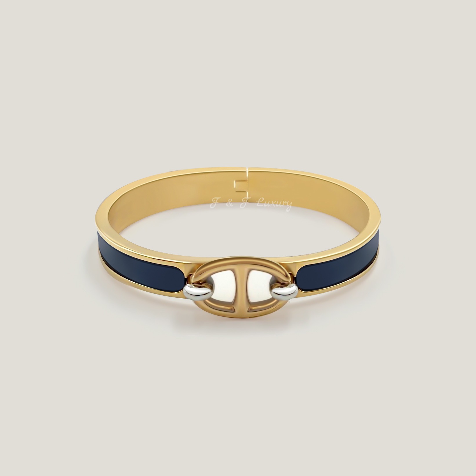 This bracelet opens and closes thanks to an ingenious toggle clasp which reveals the iconic Chaine d’Ancre signature.