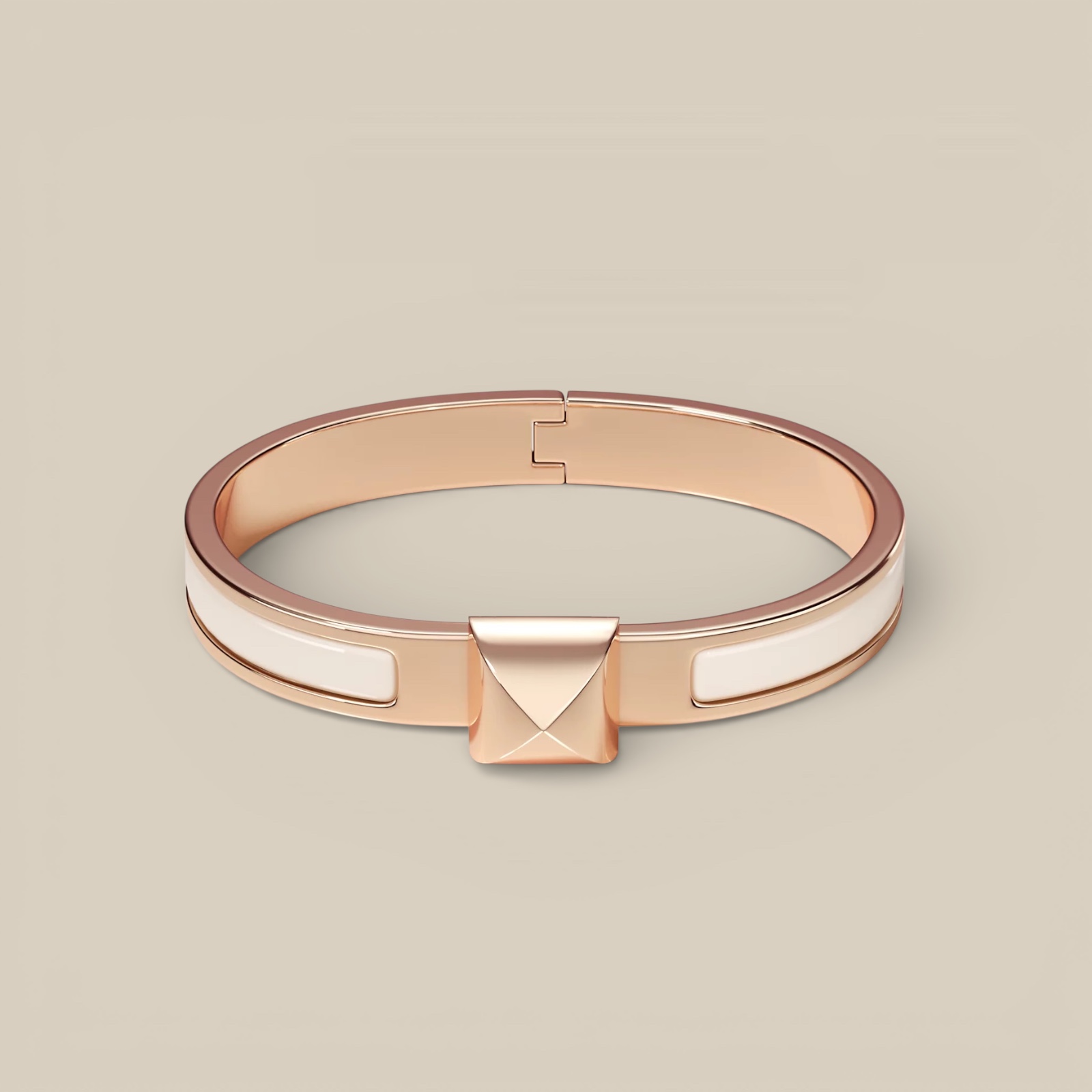 Narrow bracelet in plain enamel. This bracelet opens and closes thanks to an ingenious toggle clasp reminiscent of the iconic Medor stud signature.