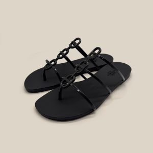 The sandal is an invitation to travel. Its journey begins on the shores of Oran, warmed by the radiant sun. Then, alive with vibrant colors and geometric lines, it makes its way between Ndebele houses. Created in 1997 by Pierre Hardy and enhanced by the iconic H cut, its style is minimalist and timeless. From one collection to the next, this summer icon is constantly reimagined in a multitude of colors and materials.