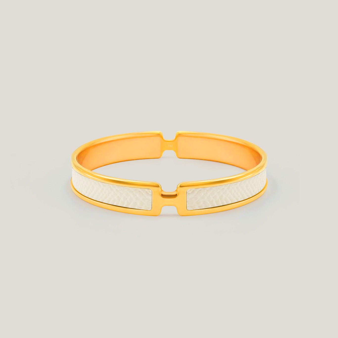 Narrow bracelet in Epsom calfskin. The Olympe bracelet, inspired by a piece dating back to 1970, reveals a discreet “H” in its center.