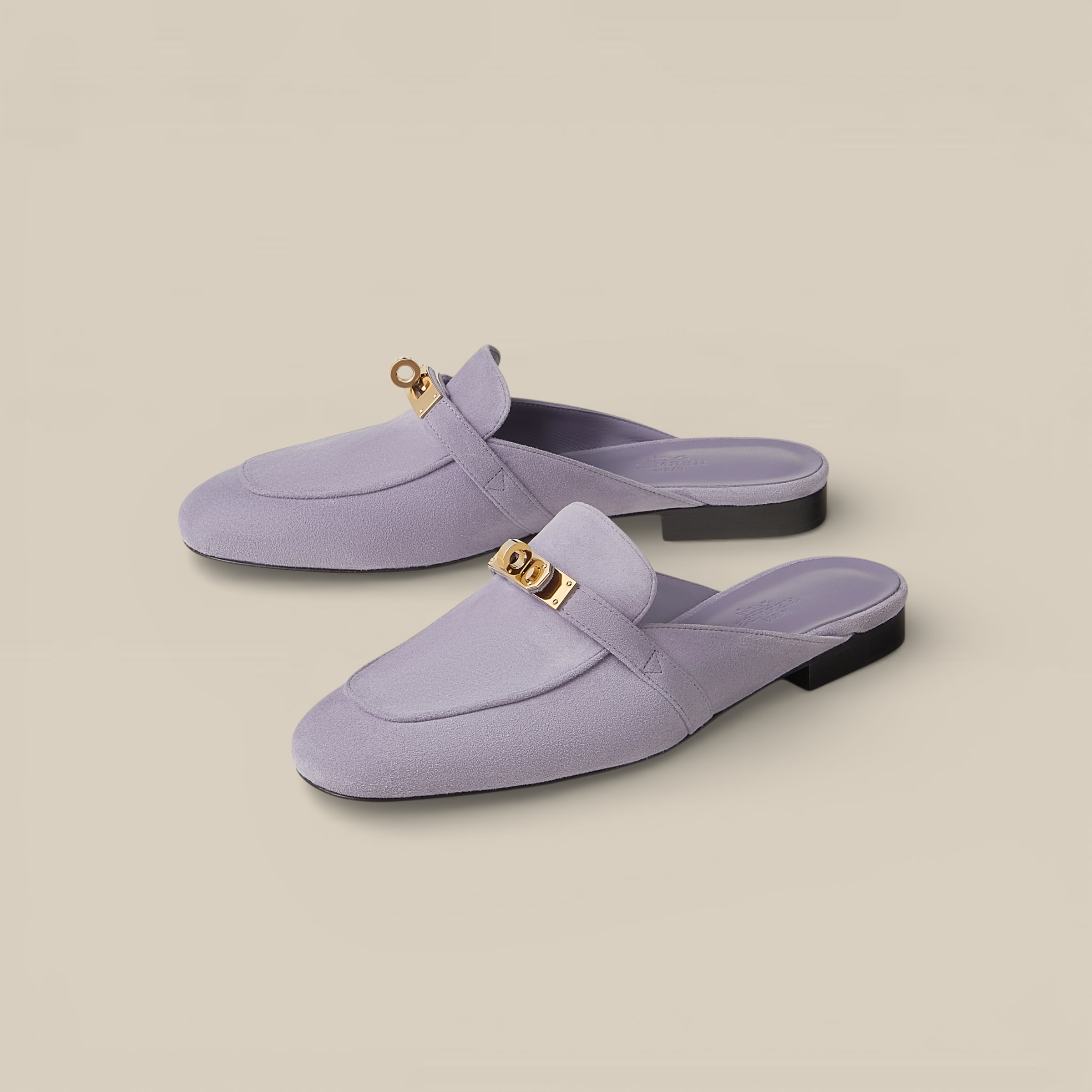 Mule in suede goatskin or calfskin with iconic Kelly buckle. For everyday elegance.