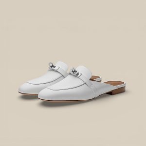 Mule in calfskin or goatskin with iconic palladium plated Kelly buckle. For everyday elegance.