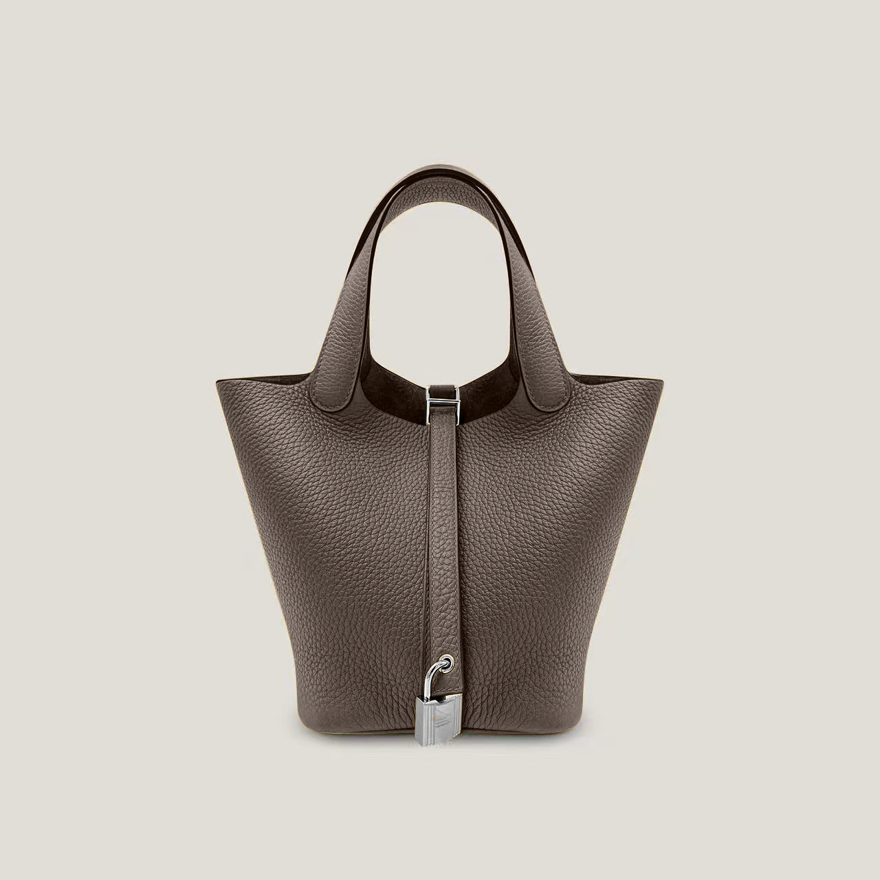 This timeless and minimalist bindle is inspired by horse feeders and is equipped with a discreet padlock. It takes its name from an old French term for the measure of oats given to a horse. The Picotin is the perfect equestrian escort, available in unlined leather that showcases the material; or in canvas and leather with outside pockets for a light, casual and functional wear.