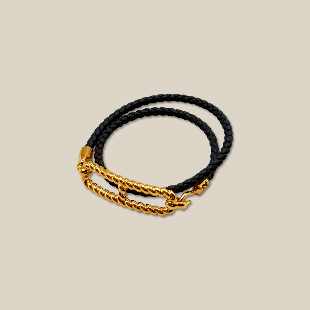 Braided double tour bracelet in Swift calfskin with Roulis closure.