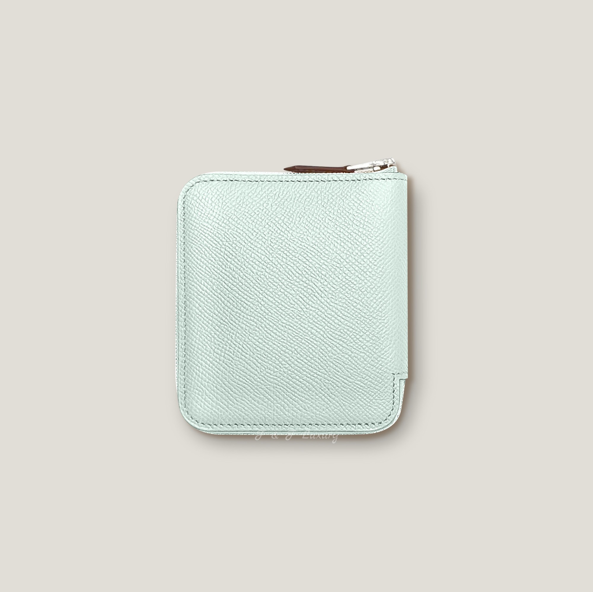 Compact wallet in Epsom and Barenia leather, billfold pocket, 1 gusset pocket and central change purse with Palladium plated zipper